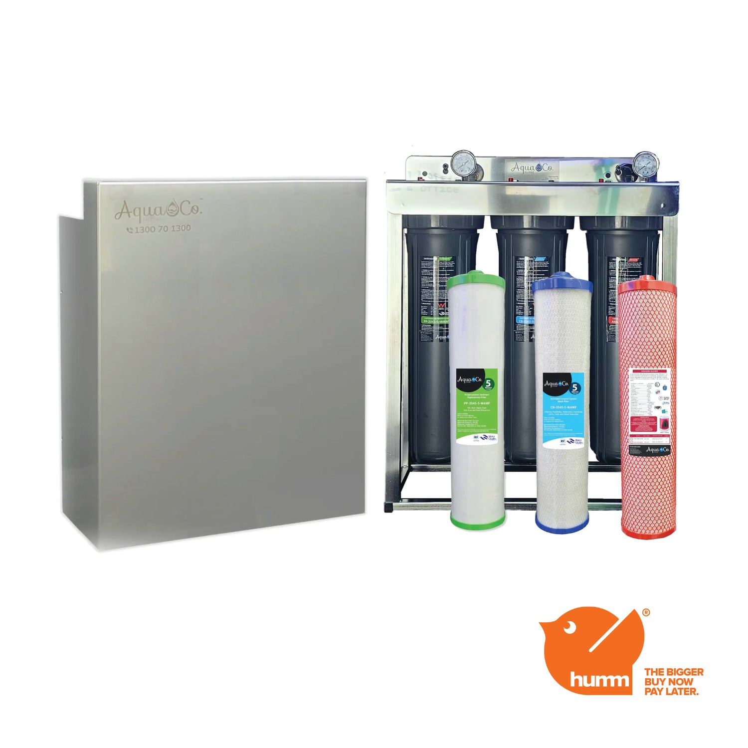 The AquaCo Premium Three Stage Whole House Water Filter is Australia's Most Advanced Whole House Filtration System. With three filtration stages and large 20" x 4.5" filters, this Premium Three Stage Whole House Water Filter. Backed by laboratory testing, our Premium 3 Stage Filtration System is capable of reducing over 199 different contaminants from your water including chlorine, heavy metals, rust, pesticides, and scale build up.